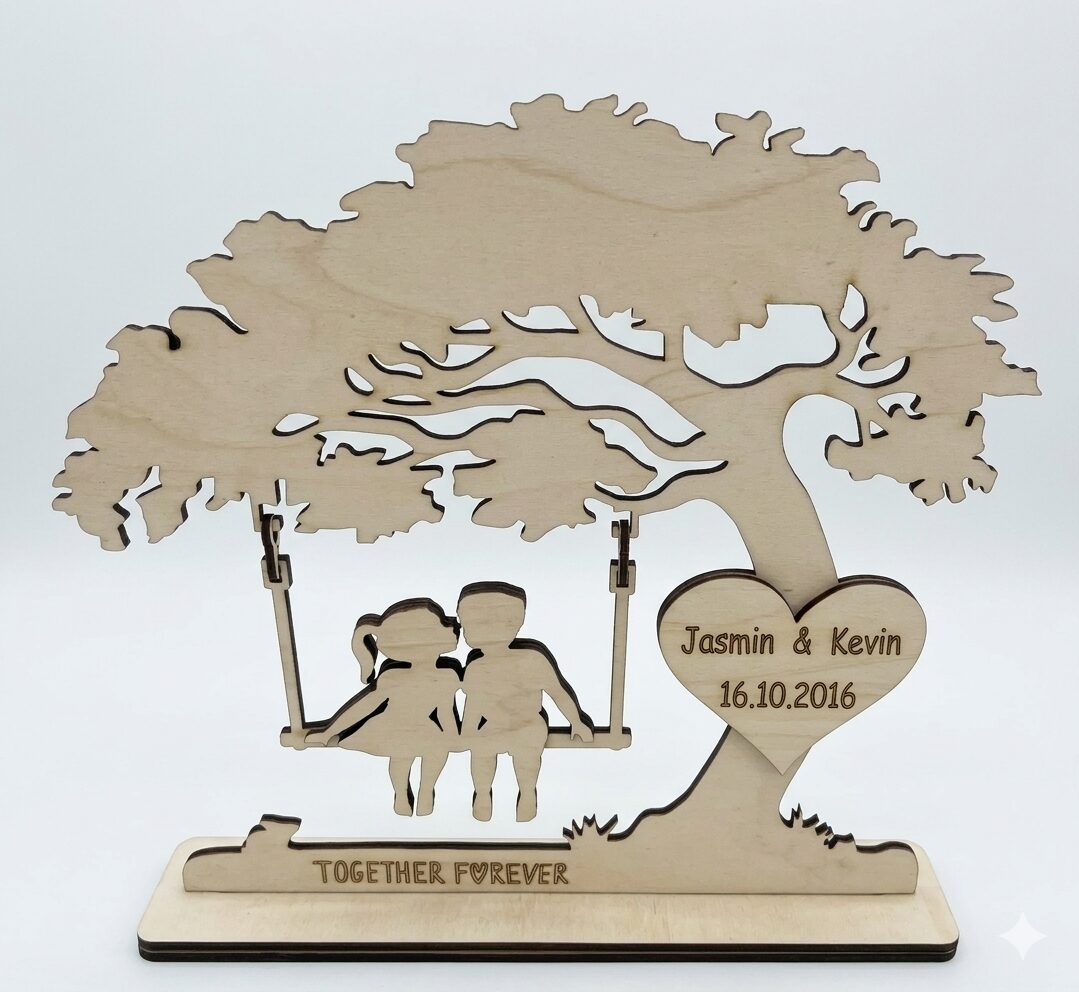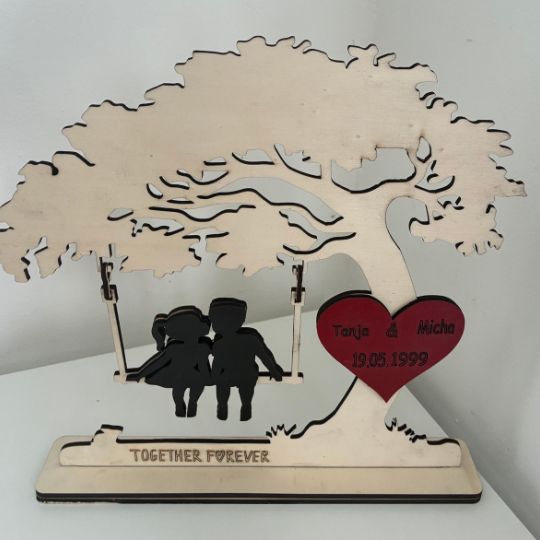 - Details: Holzaufsteller für Paare, romantisches Motiv mit Baum und Schaukel